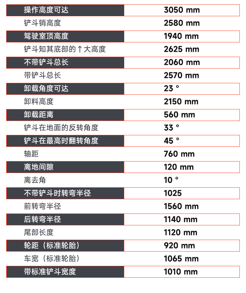 HT-L25 輪式滑移裝載機參數(shù)